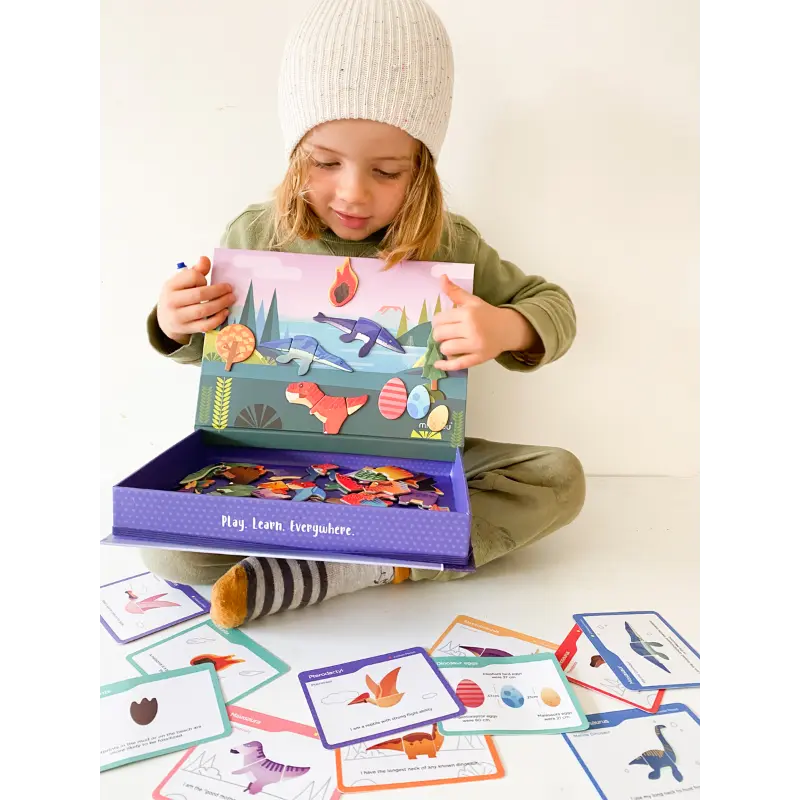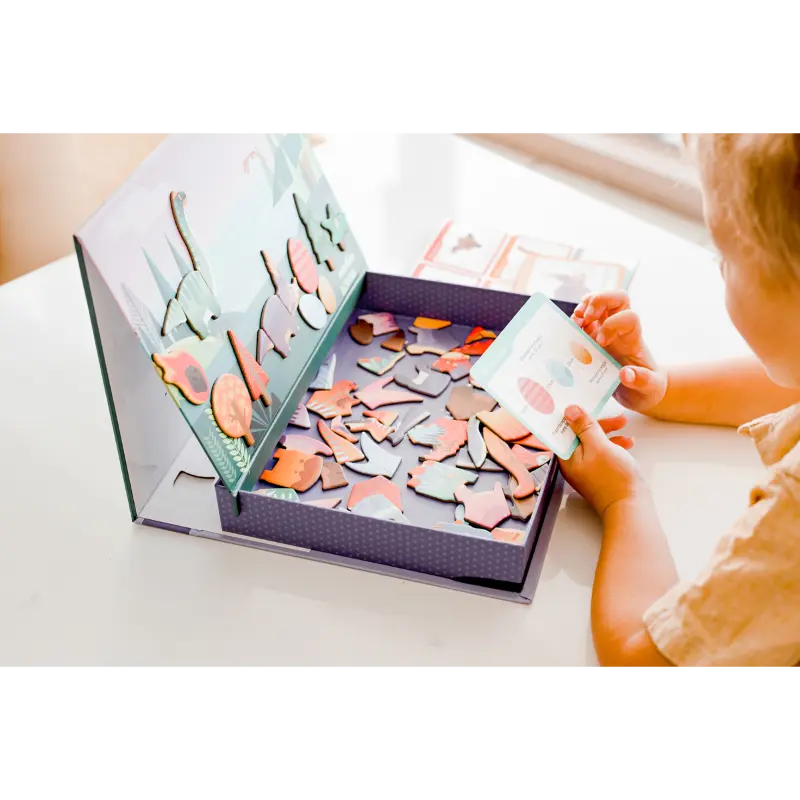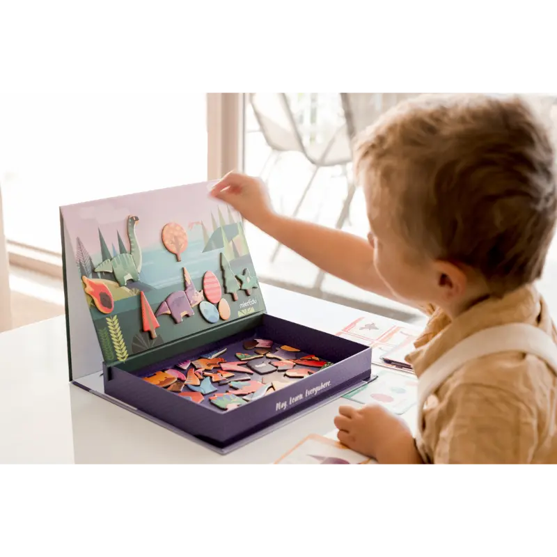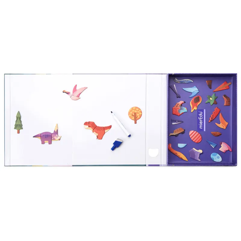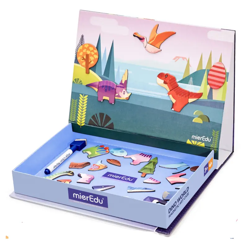 Samengesteld uit 57 magneten, 8 kaarten en 1 veegschijf, is deze koffer handig verpakt en gemakkelijk mee te nemen. Als de koffer eenmaal open is, kan hij worden omgetoverd tot een groot, schoon te vegen tekenbord, zodat kinderen kunnen tekenen en hun eigen verhalen kunnen maken. Magnetische spellen met kunstkoffers zijn perfect voor het ontwikkelen van creativiteit, tekenen en fijne motoriek.