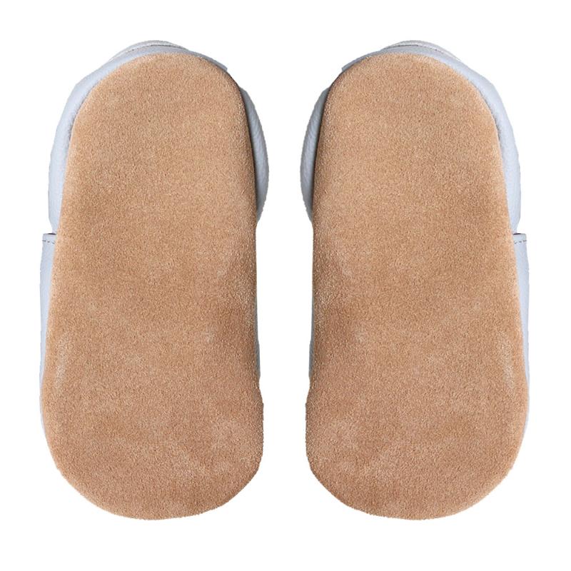 Heerlijk soepele babyslofjes van Hobea. Met de hand gemaakt en vanzelfsprekend vrij van schadelijke stoffen. Het bijzondere aan de slofjes van Hobea is dat de elastieken rand aan de achterkant in gedeelten is doorgestikt, dit zorgt voor een nòg betere pasvorm.