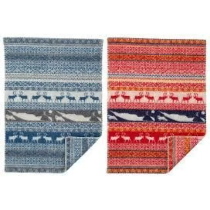 Eco-wollen wiegdeken Sarek heeft een echt scandinavisch motief. De wiegdekentjes zijn mooi afgewerkt met een festonsteek aan de randen.
