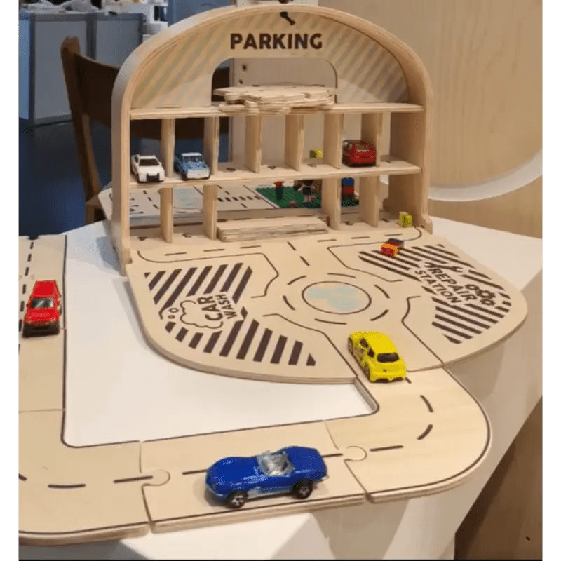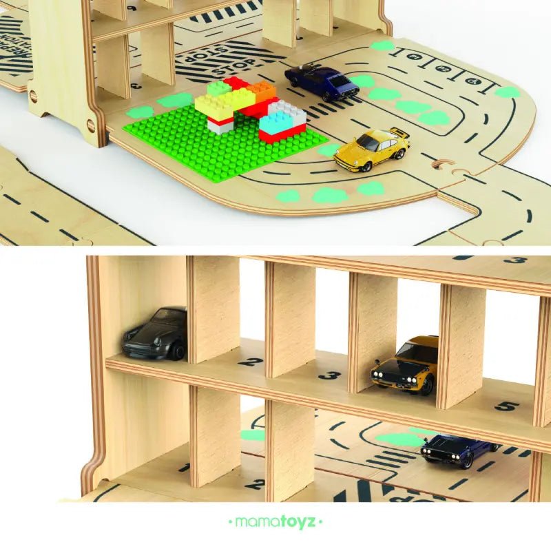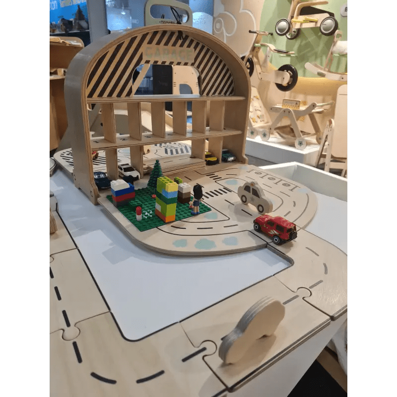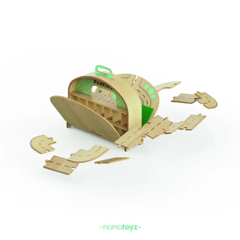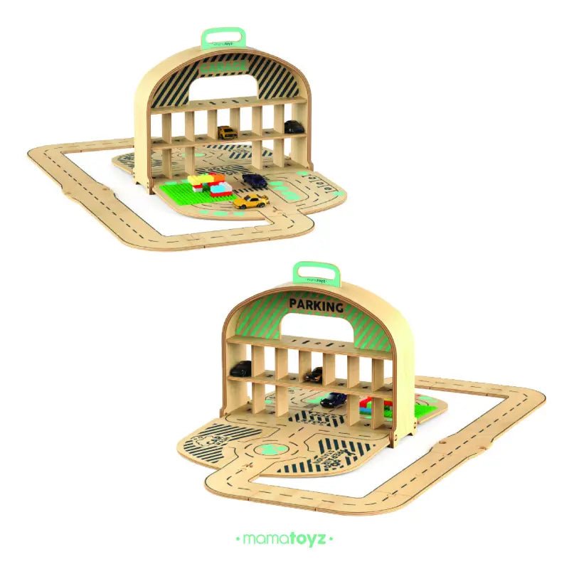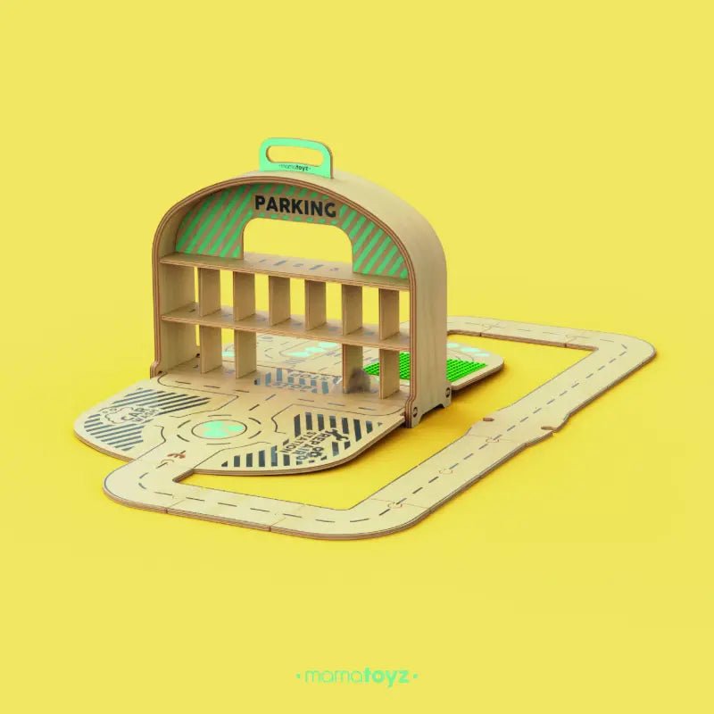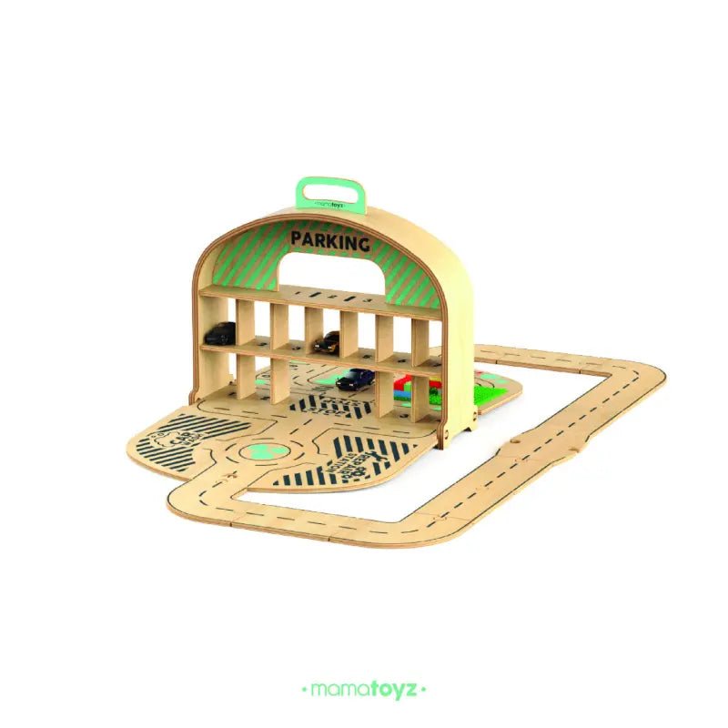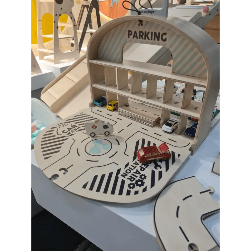 De Mamatoyz houten Carpark Garage is een draagbare houten speelgoed-autogarage en wegenset, geïnspireerd door de natuurlijke behoefte van kinderen om hun speelgoedauto’s mee te nemen en overal te spelen. Ontworpen met zowel creativiteit als bruikbaarheid in gedachten, is het het perfecte reisvriendelijke speelgoed voor kleine autoliefhebbers.