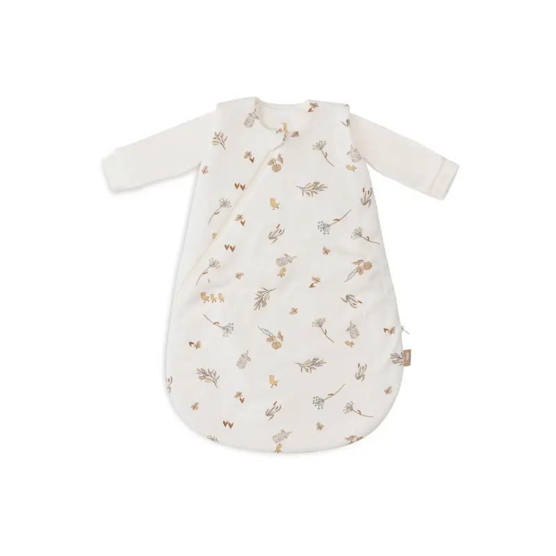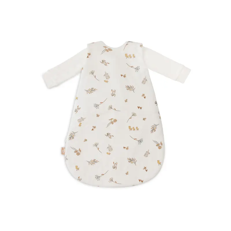 Deze 4-seizoenen slaapzak heeft 3 TOG-waardes, afhankelijk van de combinatie. De binnenslaapzak heeft een TOG van 1.0, de buitenslaapzak 2.5 en samen vormen ze een TOG van 3.5. Zo slaapt je kindje het hele jaar door comfortabel. De print is een all-over printje met eendjes, konijntjes en riverside plantjes op een Ivory kleurige achtergrond.