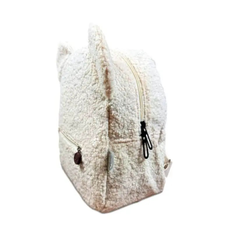 Gemaakt van heerlijk knuffelbaar teddy-materiaal, is dit rugzakje perfect voor kleine ontdekkingsreizigers die comfort en stijl willen combineren.