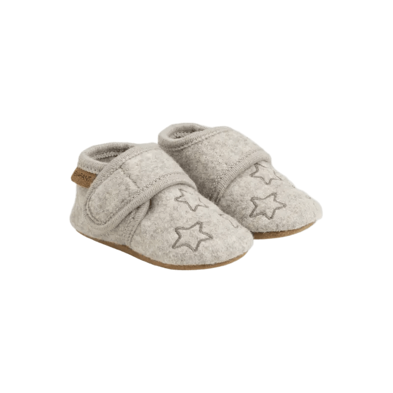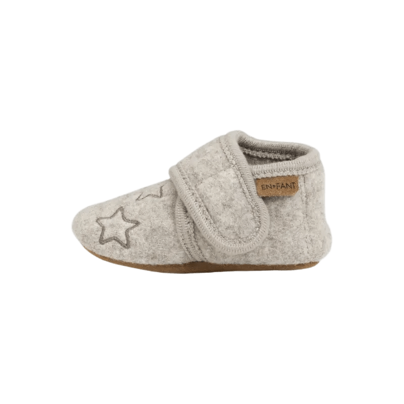 Heerlijke babyslofjes van En Fant gemaakt van 100% wol met suède zooltje. De babyslofjes sluiten met stevige klittenband en hebben een suède merklabel op de zijkant.