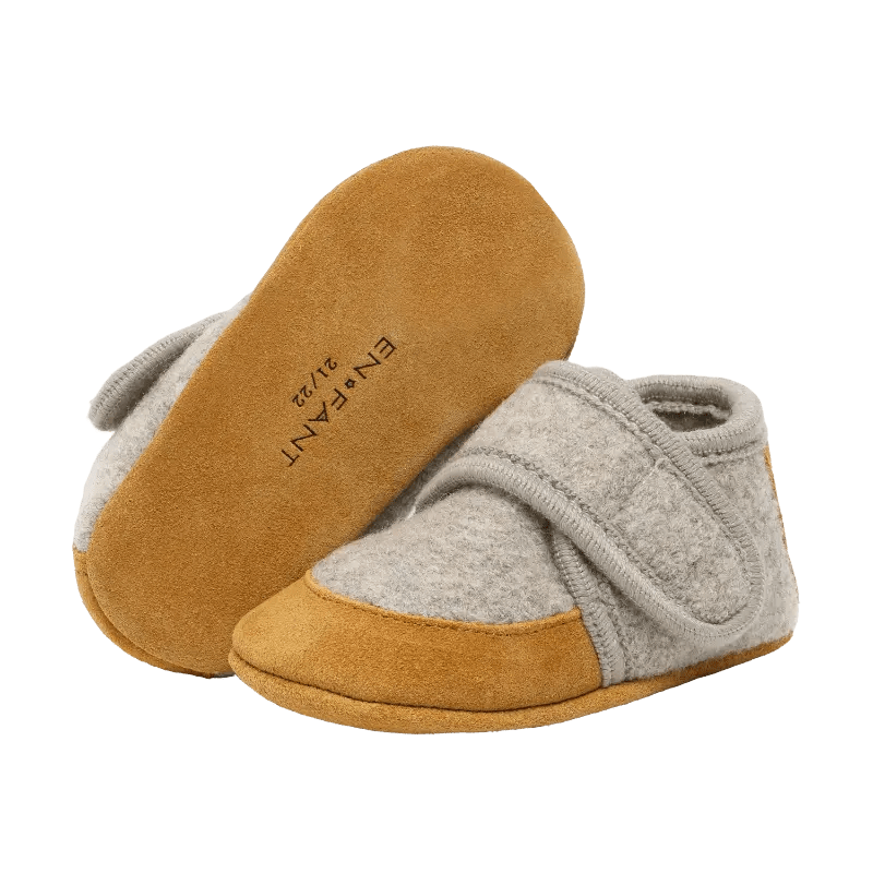 Heerlijke babyslofjes van hoge kwaliteit wol van En Fant. De babyslofjes sluiten met klittenband en hebben een heerlijke pasvorm.