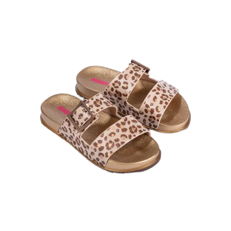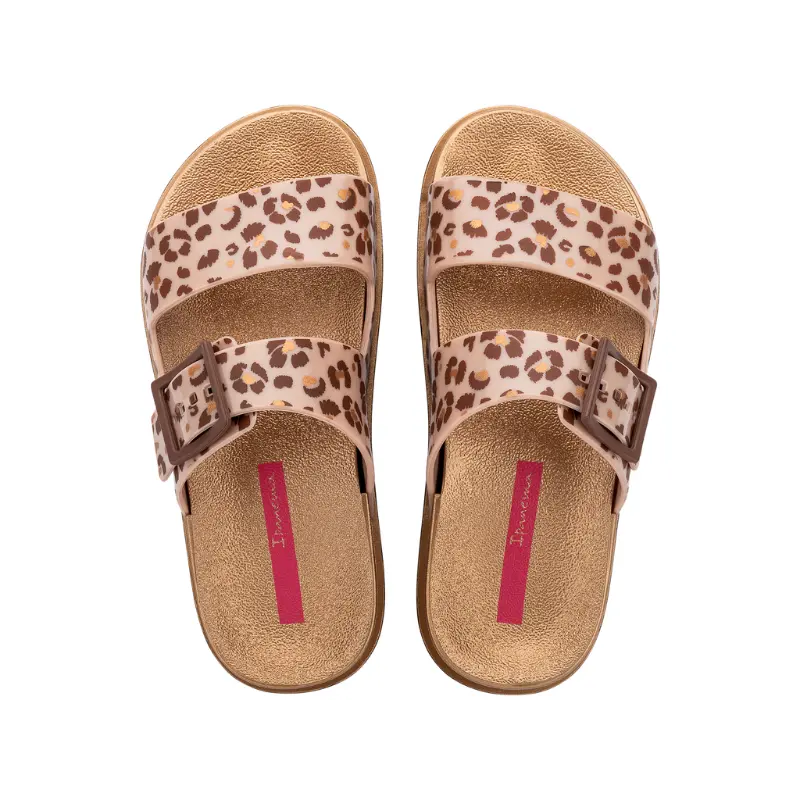 Comfortabel en trendy voor de meiden. De Ipanema Classy Kids is een stoere slide met een panterprintje. Het voetbed is anatomisch en vormt daardoor mooi om de groeiende voeten. Met de gesp op het bandje kun je de slide perfect passend maken. Op naar vele zomerse avonturen!
