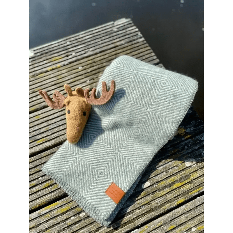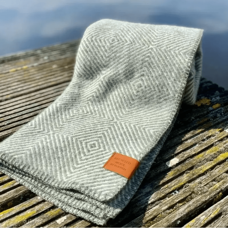 De deken Gooseye is gemaakt van 25% recycled wool en 75% eco-lamswol. Recycled wol is wol dat bij het productieproces overblijft, het wordt verzameld en opnieuw gebruikt. De wol die wordt gerecycled is een blend van alle kleuren waardoor er een gemêleerd grijs/bruin garen ontstaat.
