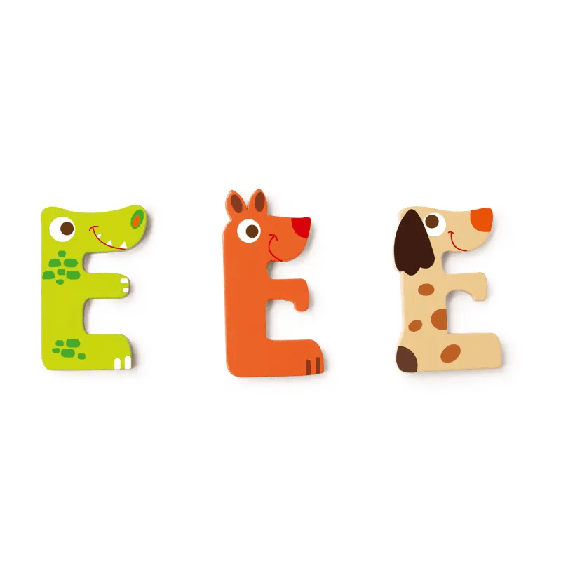 Het Scratch alfabet bestaat uit kleurrijke dieren, keuze uit 2 of 3 varianten per letter waardoor je eindeloos kan variëren. De letters zijn gemaakt van hout en erg fijn uitgesneden waardoor ze erg kleine details hebben zoals poten, tanden, vleugels. Deze letters zijn decoratief en geen speelgoed.