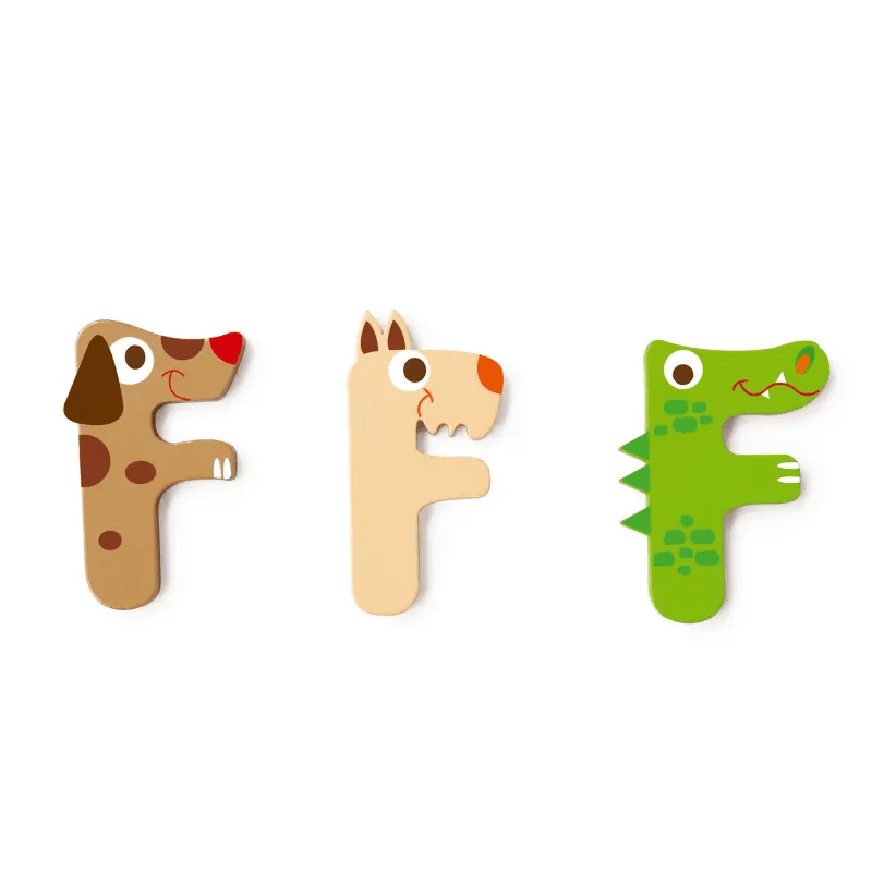 Het Scratch alfabet bestaat uit kleurrijke dieren, keuze uit 2 of 3 varianten per letter waardoor je eindeloos kan variëren. De letters zijn gemaakt van hout en erg fijn uitgesneden waardoor ze erg kleine details hebben zoals poten, tanden, vleugels. Deze letters zijn decoratief en geen speelgoed.
