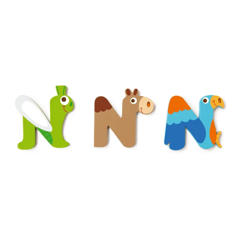 Het Scratch alfabet bestaat uit kleurrijke dieren, keuze uit 2 of 3 varianten per letter waardoor je eindeloos kan variëren. De letters zijn gemaakt van hout en erg fijn uitgesneden waardoor ze erg kleine details hebben zoals poten, tanden, vleugels. Deze letters zijn decoratief en geen speelgoed.