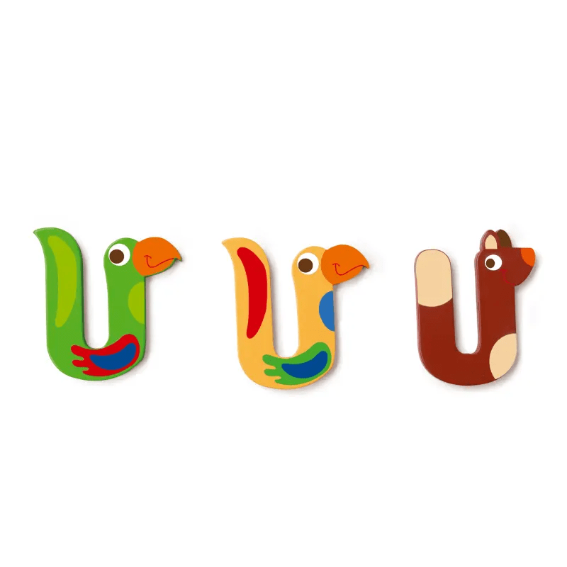 Het Scratch alfabet bestaat uit kleurrijke dieren, keuze uit 2 of 3 varianten per letter waardoor je eindeloos kan variëren. De letters zijn gemaakt van hout en erg fijn uitgesneden waardoor ze erg kleine details hebben zoals poten, tanden, vleugels. Deze letters zijn decoratief en geen speelgoed.
